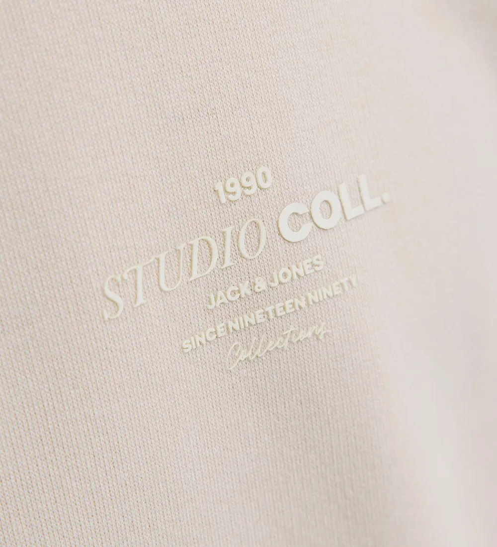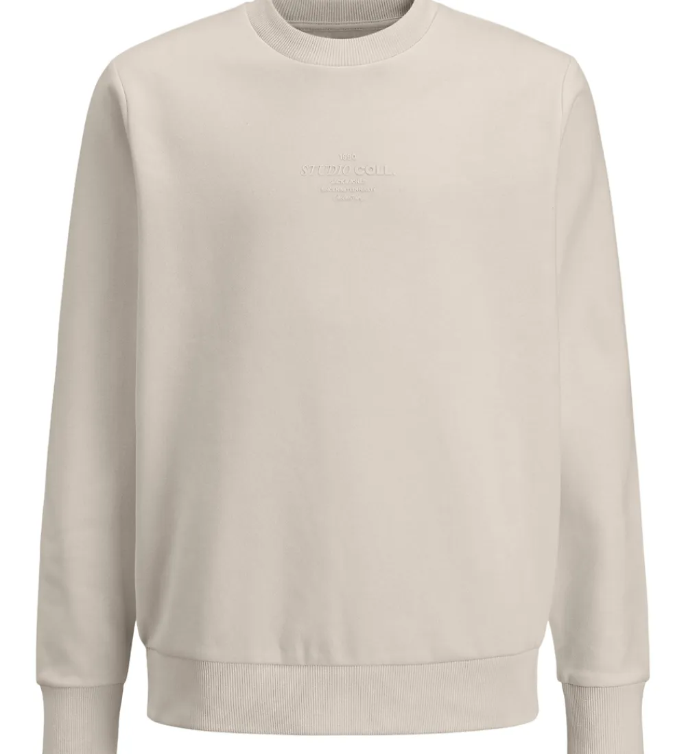 Elegant Jack & Jones sweatshirt i en neutral beige nuance. Sweatshirten har rund hals samt lange ærmer, der sikrer et afslappet udtryk. Jack & Jones designet har en diskret præget tekst på brystet, som tilføjer en stilfuld detalje.