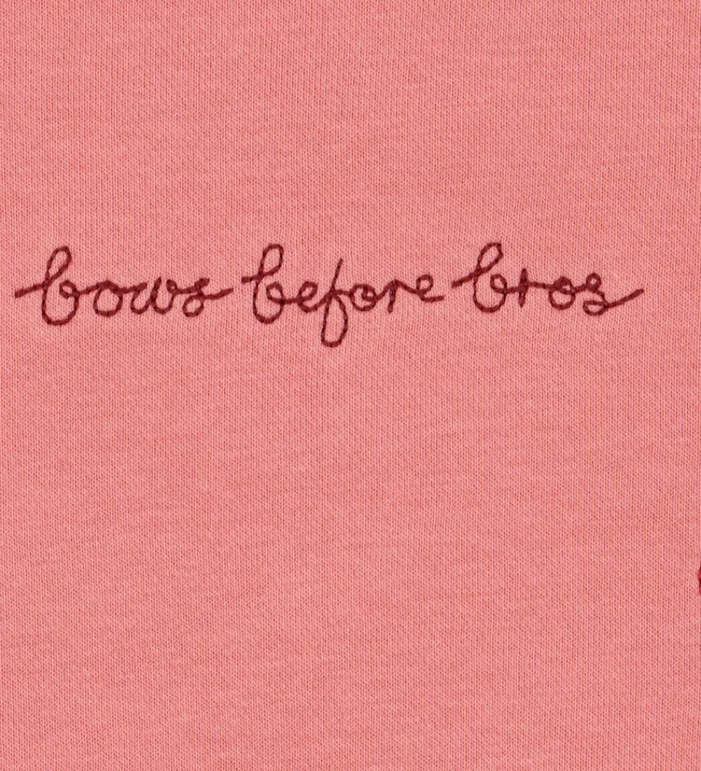 Elegant sweatshirt fra Konges Sløjd i en blød rosa nuance prydet med broderede sløjfer i rosa nuancer. Konges Sløjd sweatshirten har ribkanter ved håndled og halsudskæring samt broderet tekst på forsiden, der skaber et stilfuldt udtryk.