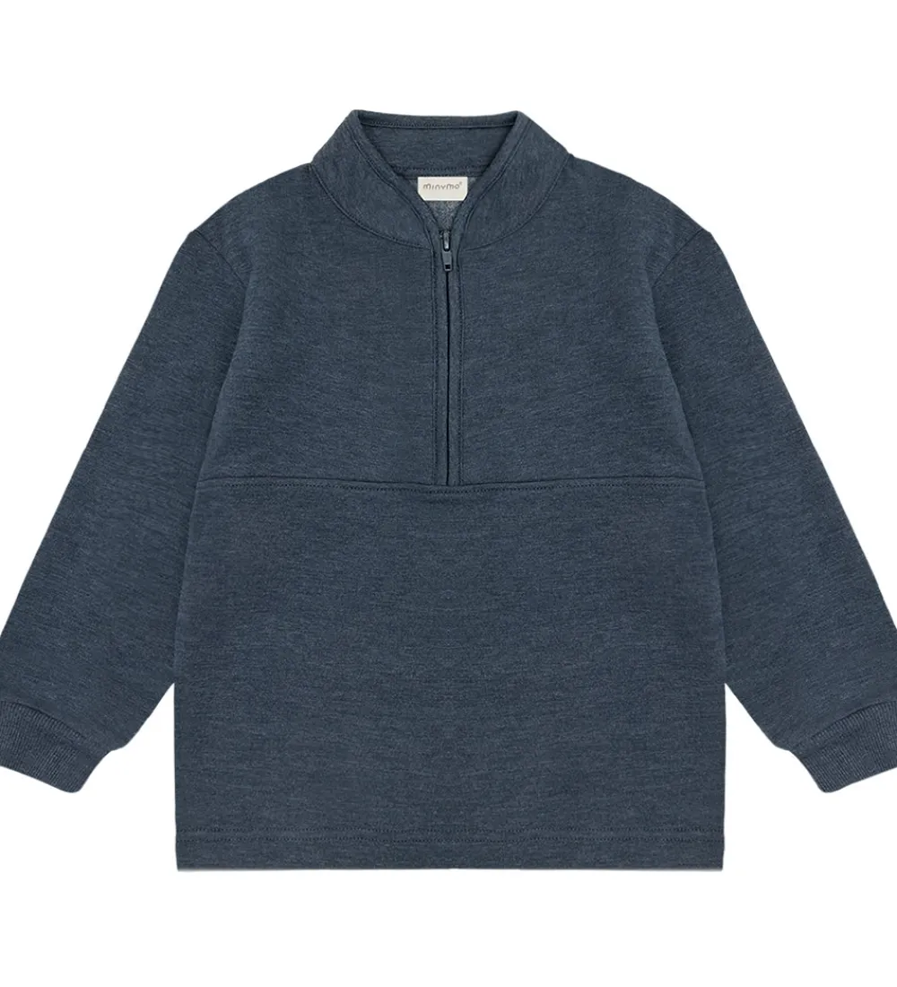 Elegante Minymo sweatshirts med en klassisk, halv lynlås i to nuancer: en dyb blå og en varm oliven. Minymo sweatshirtsene har ribkanter ved håndleddene og en moderat høj krave, hvilket giver et tidløst design. På indersiden har sweatshirtsene blødt børstet bomuld.