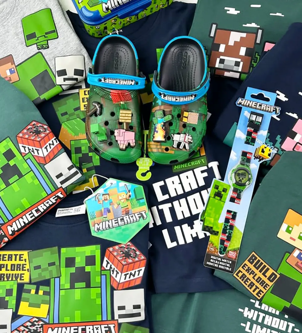 Trendy Name It sweatshirt i en dyb, marineblå nuance dekoreret med et grafisk Minecraft-print, der inkluderer ikoniske karakterer og elementer.