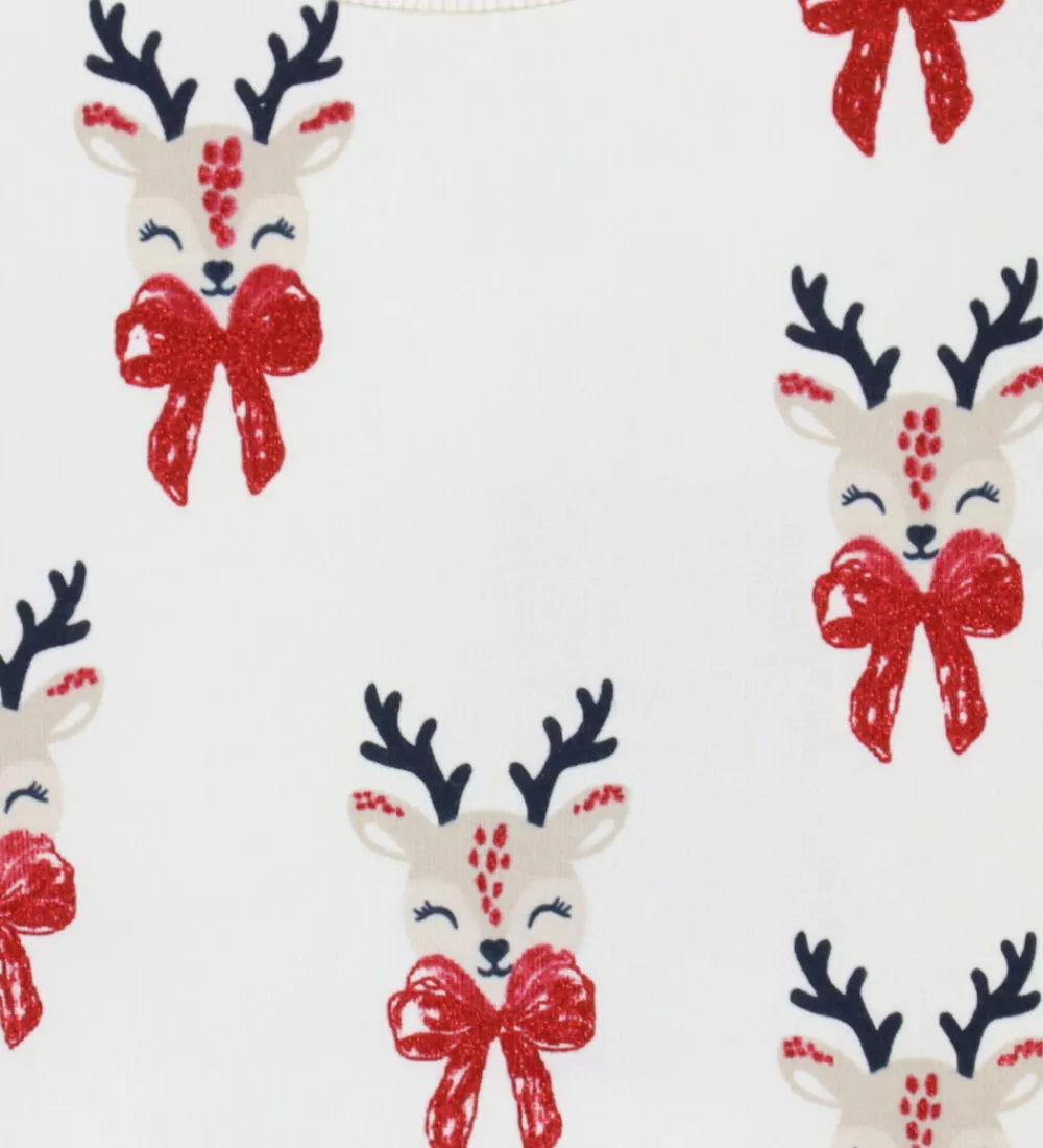 Charmerende Name It sweatshirt i hvid med et festligt print af rensdyr med røde sløjfer om halsen. Name It sweatshirten er designet med en rund halsudskæring og lange ærmer, hvilket tilføjer et klassisk udtryk. Indvendigt er der blødt, børstet bomuld.