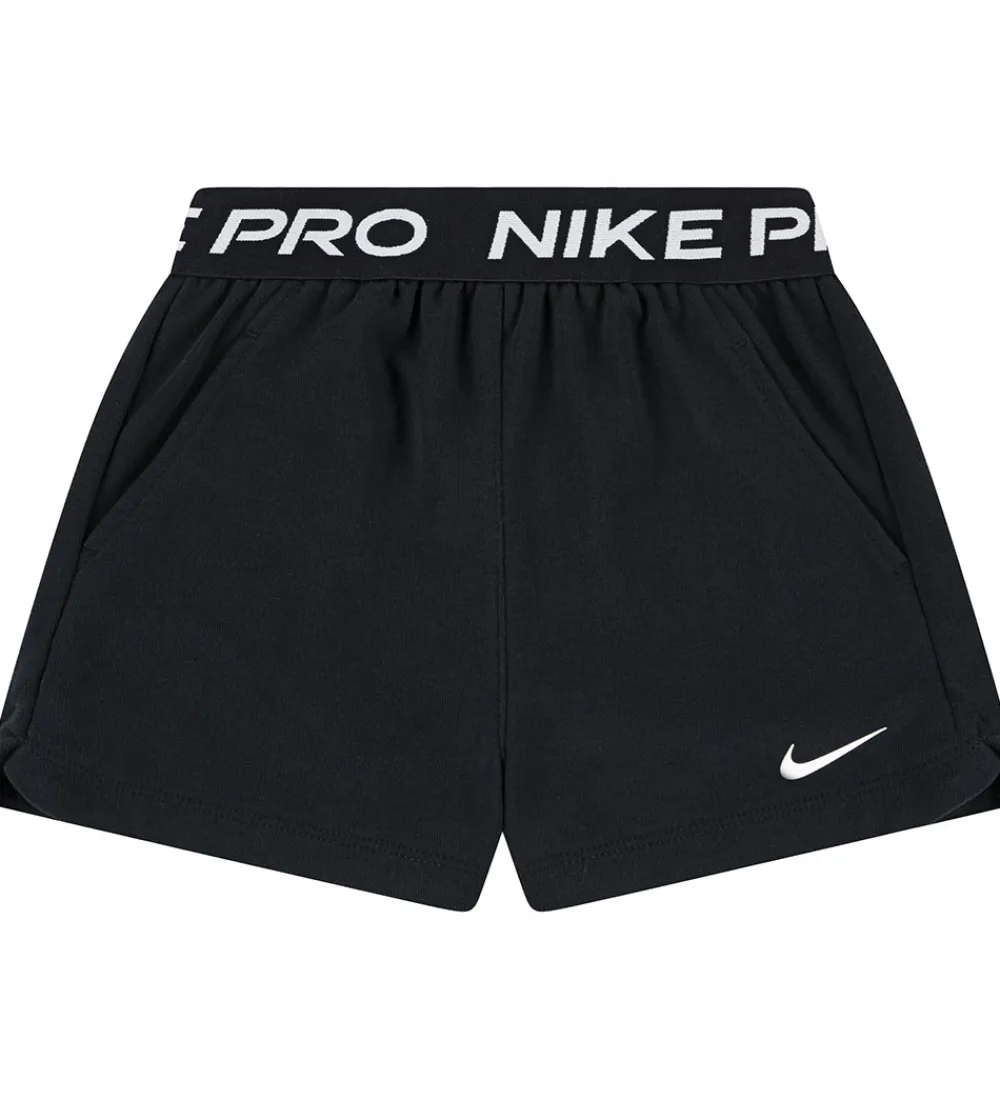 Smarte Nike sweatshorts i sort med et hvidt logoprint på venstre lår og “Nike Pro” printet i hvid langs den øverste elastikkant. Sweatshortsene har en bred elastik i taljen og korte, løse ben. I siderne er der praktiske lommer. Sweatshortsene har Dri-FIT teknologi, som holder huden tør og komfortabel mens man dyrker sport.