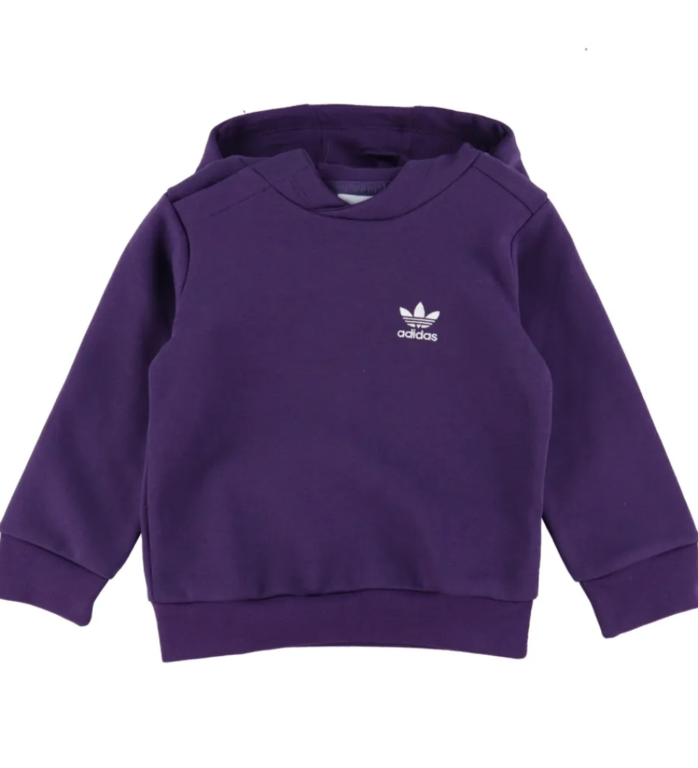 Funktionelt adidas Originals sweatsæt i lilla. Sættet består af en hættetrøje og et par sweatpants.