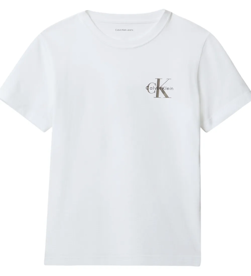 Elegant Calvin Klein t-shirt i hvid. T-shirten har et enkelt design med et Calvin Klein logo på brystet, som giver et stilrent udtryk. Den har en klassisk rund halsudskæring og korte ærmer.