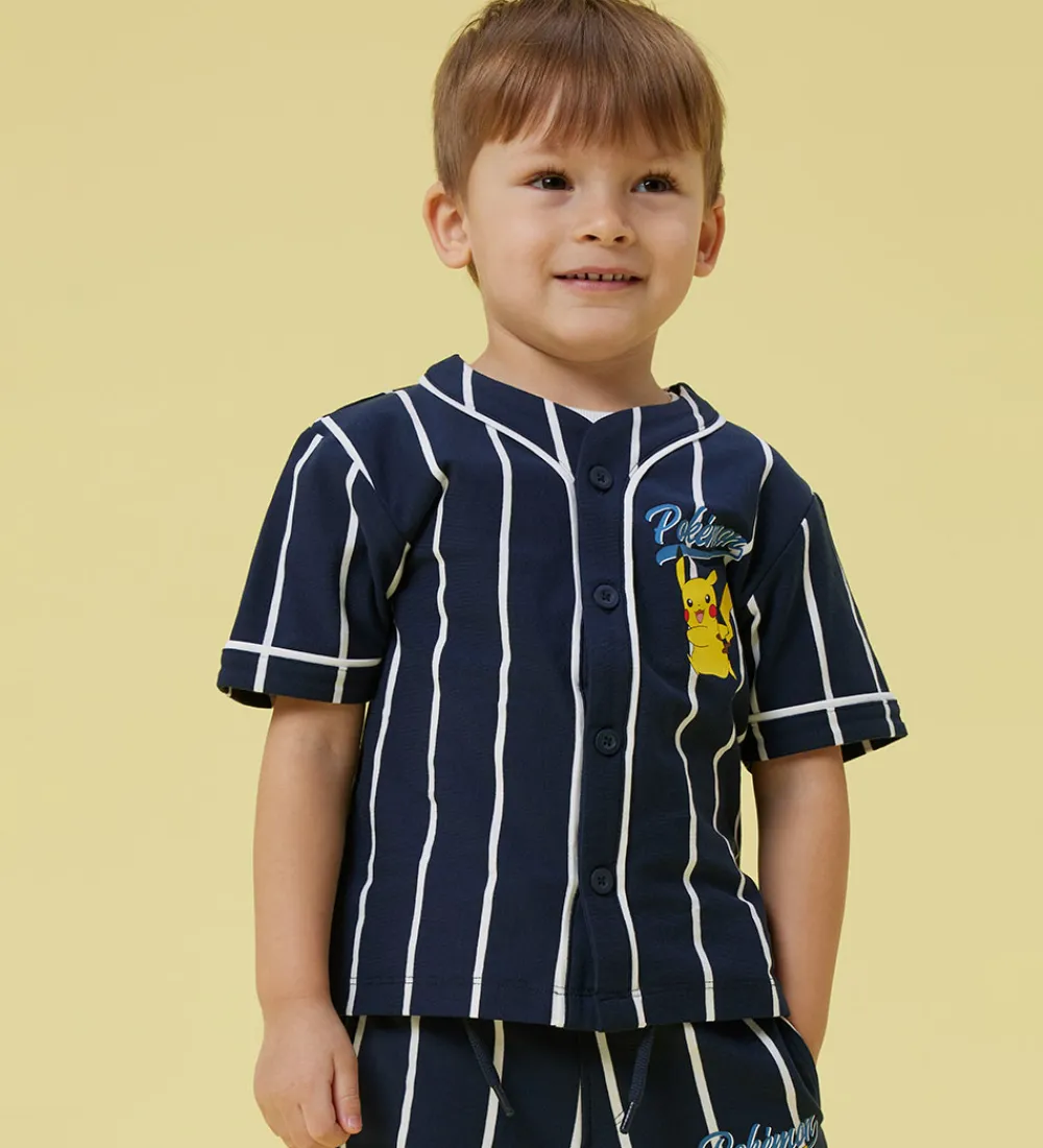 T-shirten har et iøjnefaldende print af Pikachu og tekst, der tilfører et karakterfuldt udtryk. Name It t-shirten har gennemgående trykknapper foran, der giver et moderne twist til det traditionelle design. Den har korte ærmer og en komfortabel pasform.