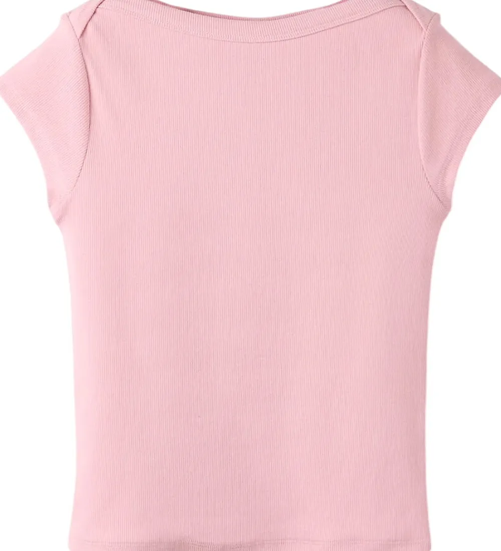 Fin LMTD t-shirt i rosa med ribstruktur. LMTD t-shirten har en bådudskæring og korte ærmer.