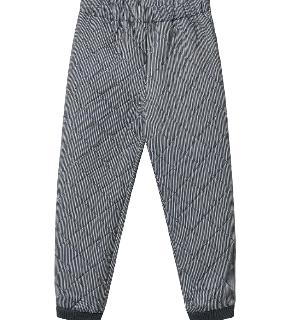 Flotte Wheat termobukser i navyblå med fine, hvide striber. Termobukserne har en quiltet struktur.