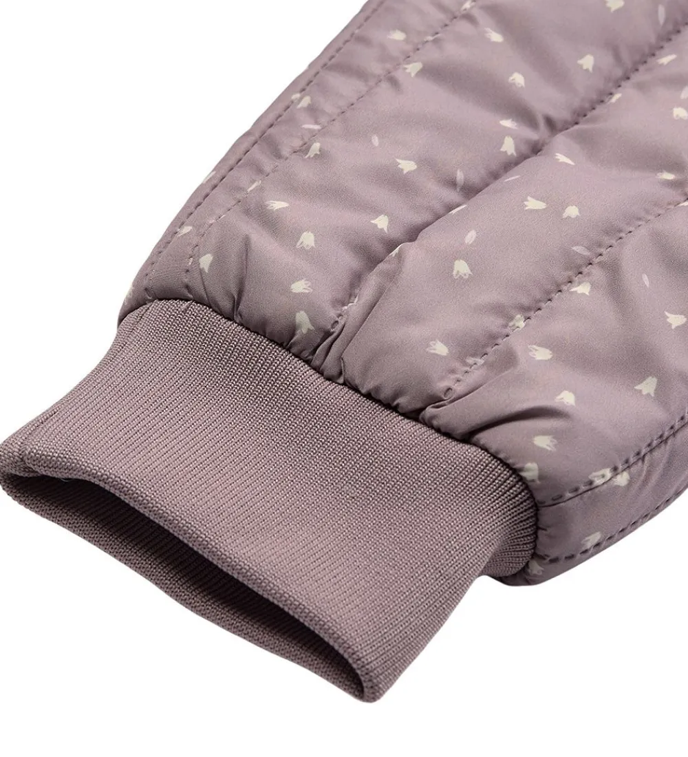 Fine Petit by Sofie Schnoor termobukser i lys lilla med et alloverblomsterprint i lyse toner. Termobukserne er med en quiltet struktur.