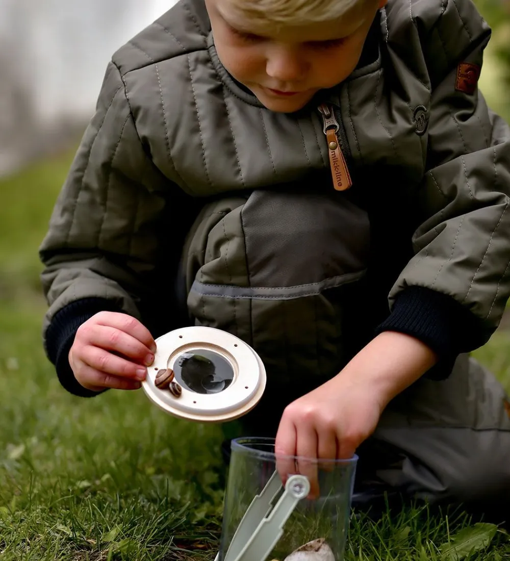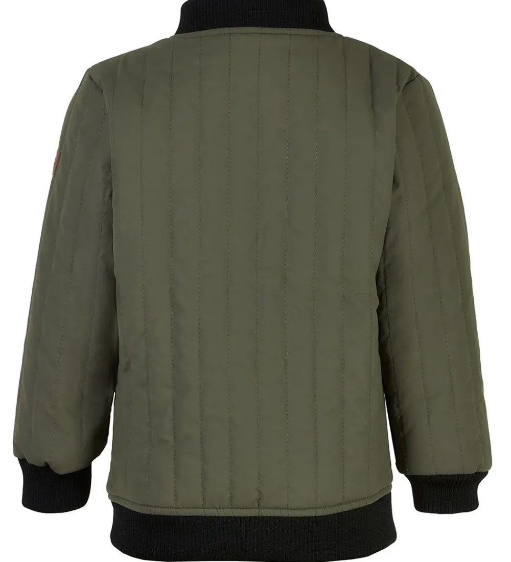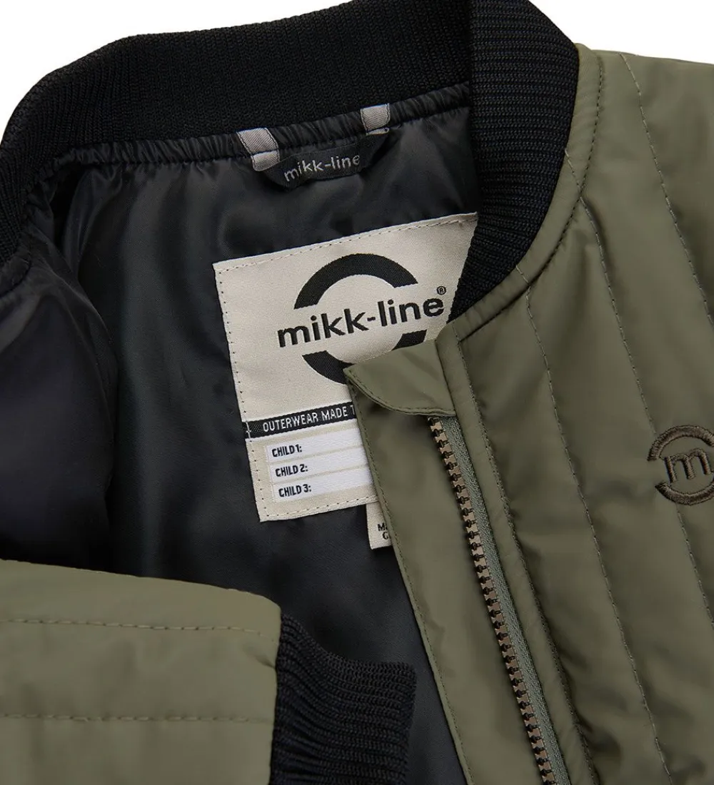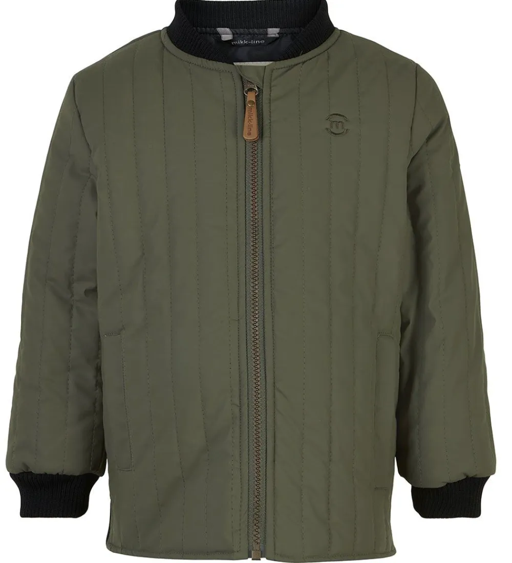 Fed Mikk-Line termojakke i støvet olivengrøn med lodrette syninger og med sorte ribkanter. På venstre bryst er der et logo broderet og på venstre skulder er der et mærke i imiteret læder.