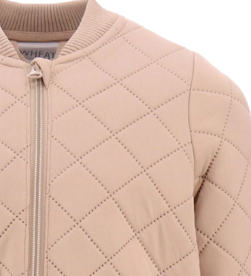 Fin Wheat termojakke i ensfarvet beige med et quiltet mønster.