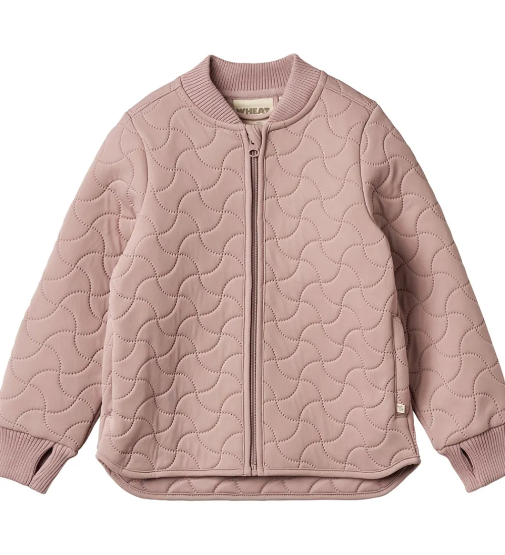 Fin Wheat termojakke i en rosa nuance med en bølgende, quiltet struktur.