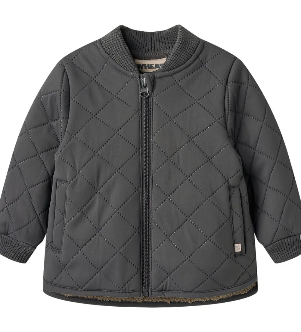 Flot Wheat termojakke i ensfarvet, mørk koksgrå med en quiltet struktur.