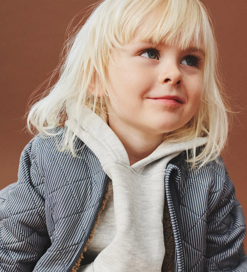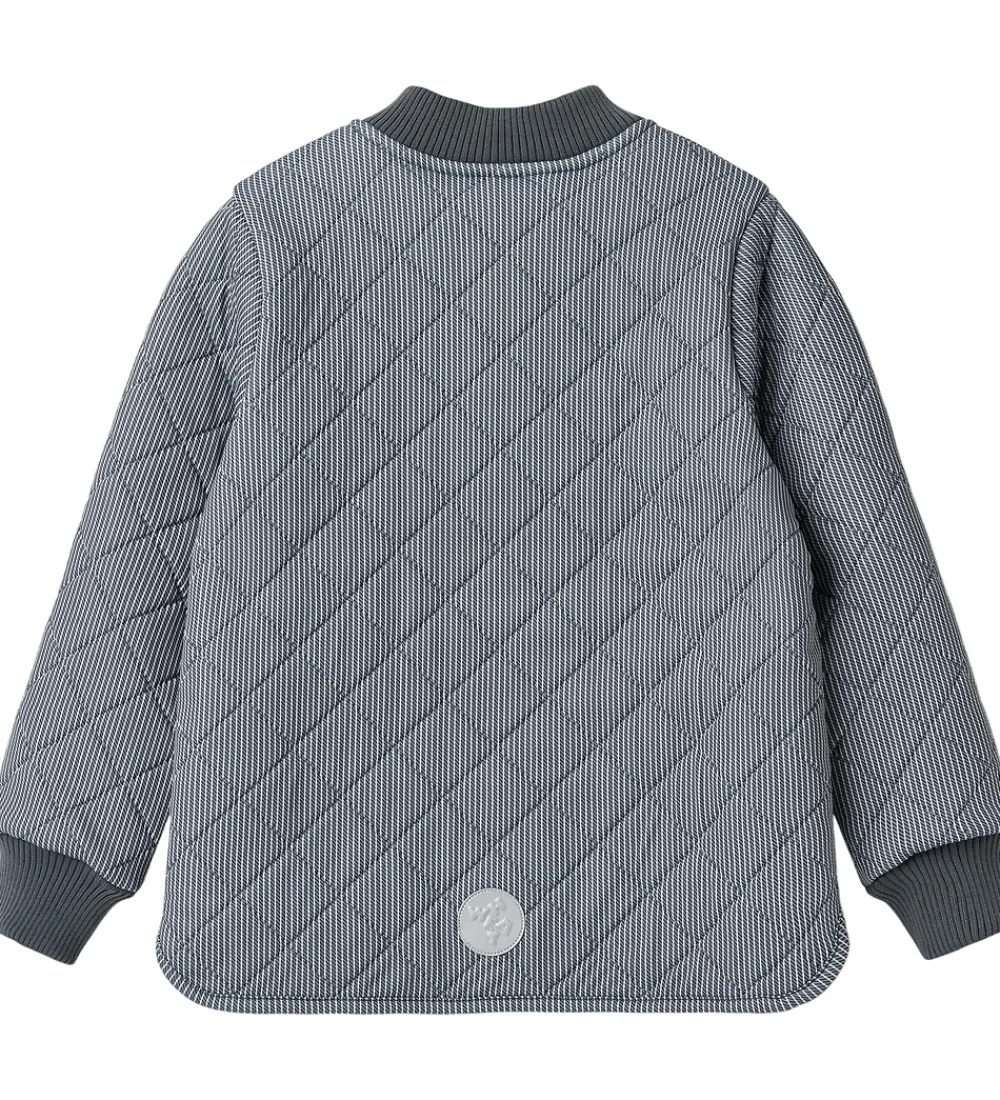 Pæn Wheat termojakke i mørkeblå med fine, hvide striber og med en quiltet struktur.