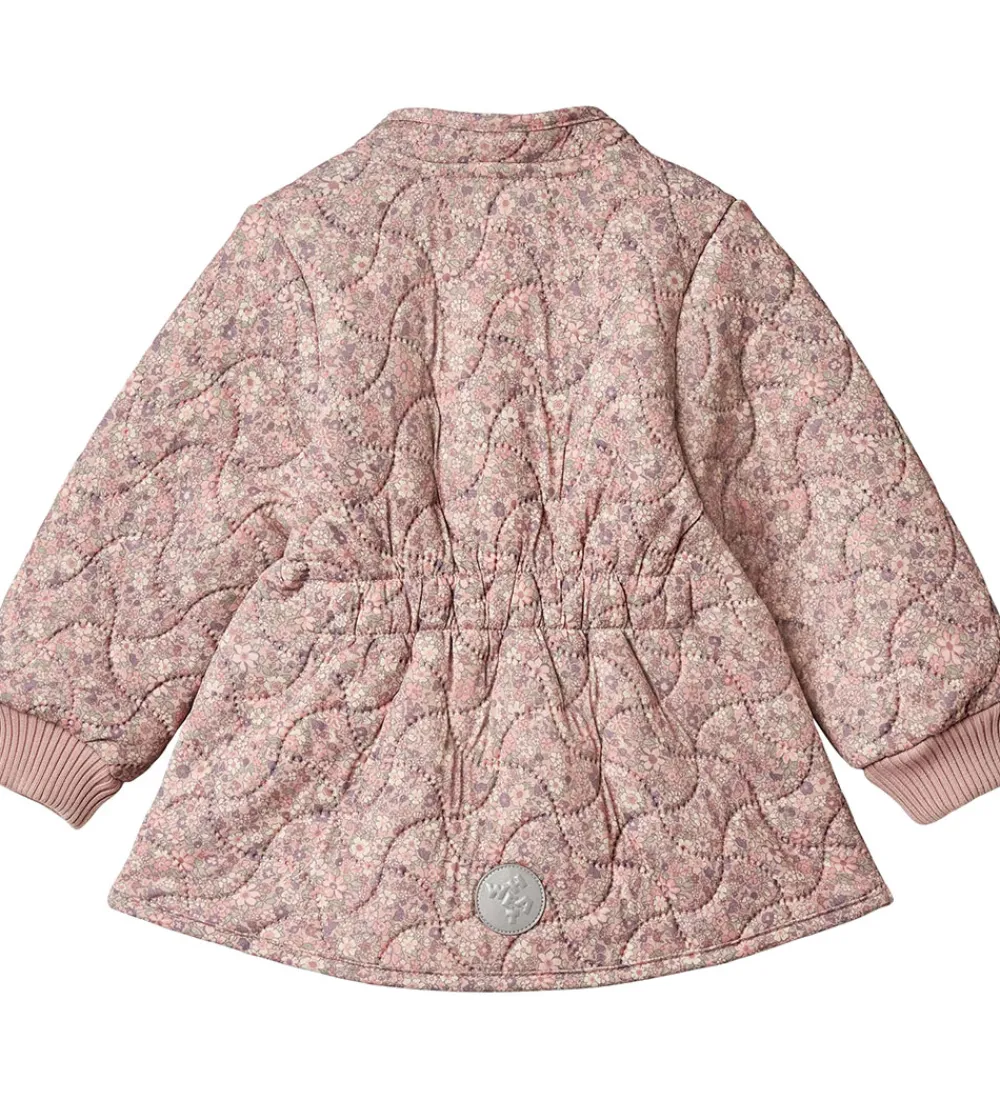Flot Wheat termojakke i rosa med et alloverblomsterprint og med en bølgende, quiltet struktur.