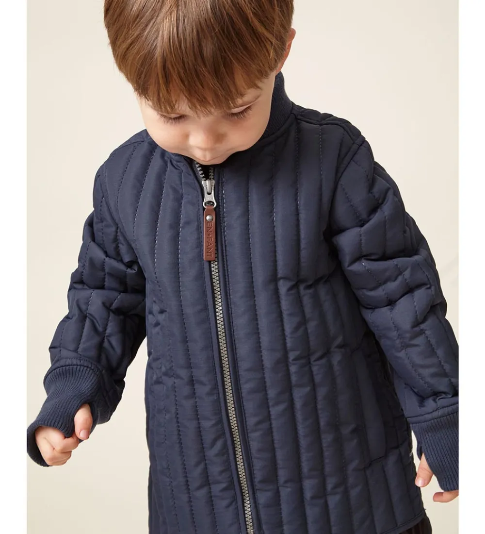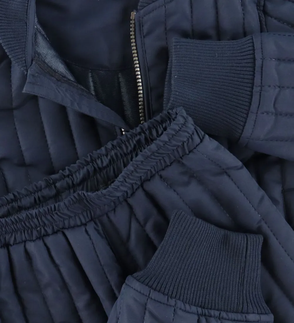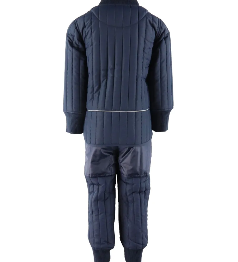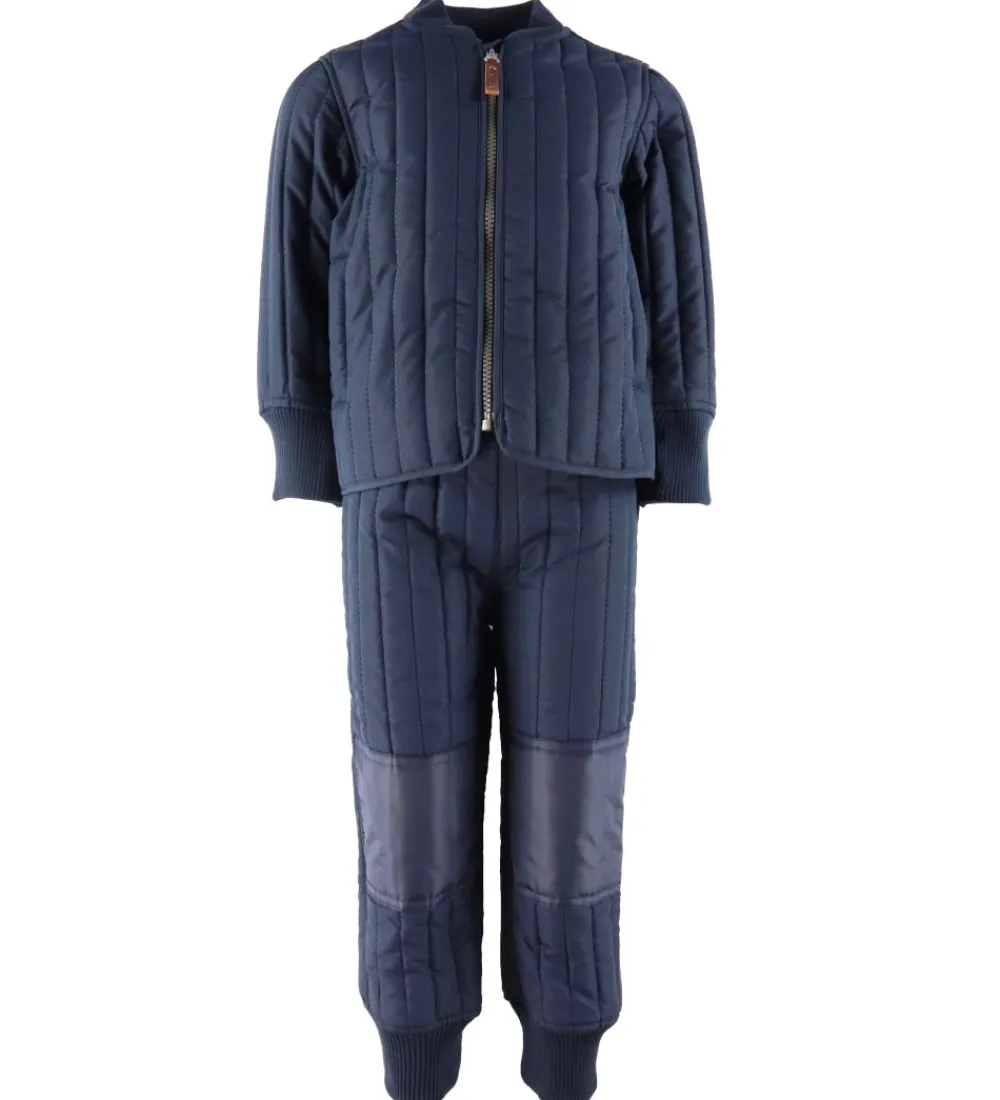 Skønt En Fant termotøj i navyblå med lodrette syninger. Sættet består af både en termojakke og et par termobukser.