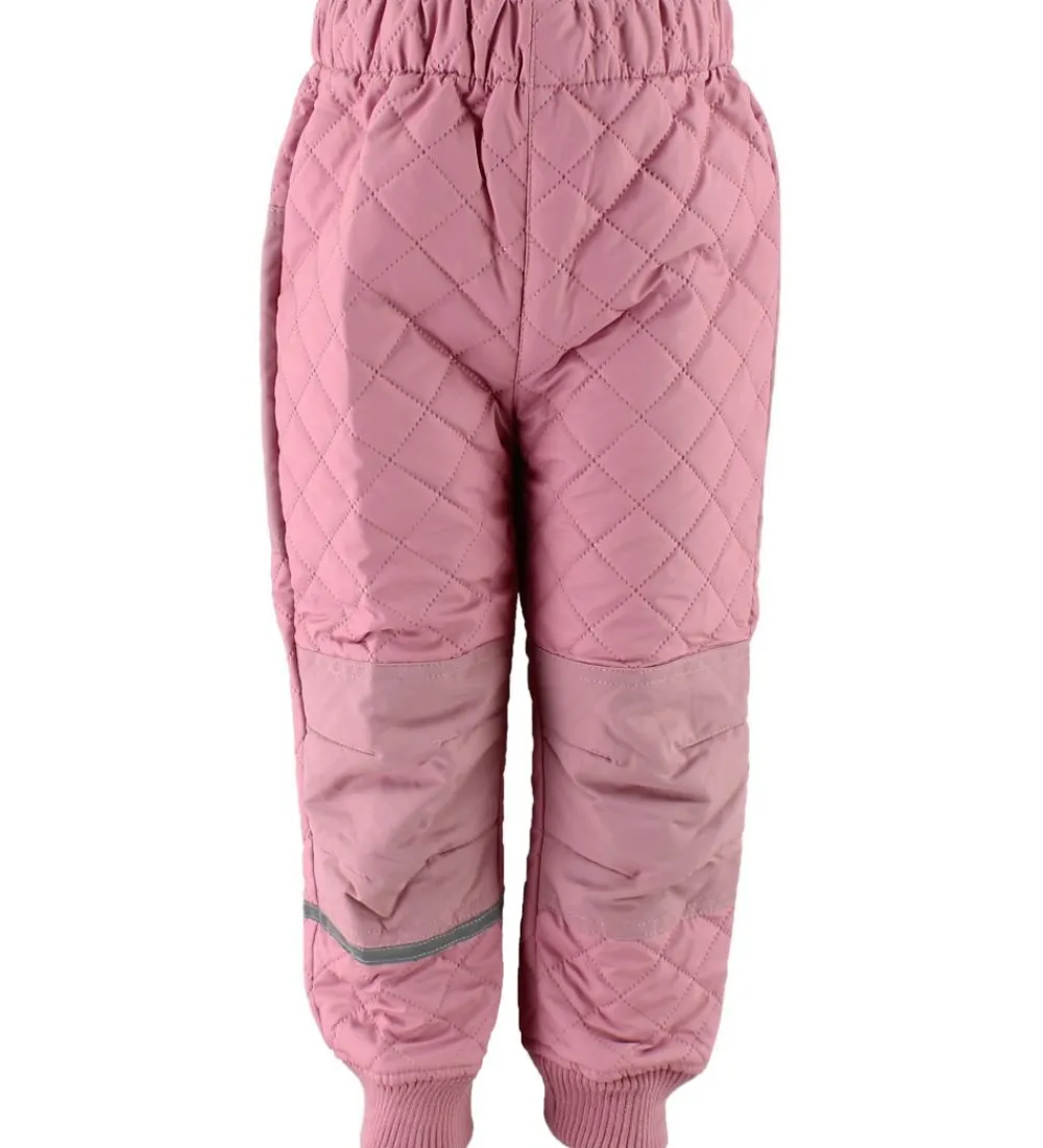 Super flot CeLaVi termotøj i rosa besående af en termojakke og et par termobukser med en quiltet struktur. Omkring højre arm og højre ben er der en praktisk refleks.