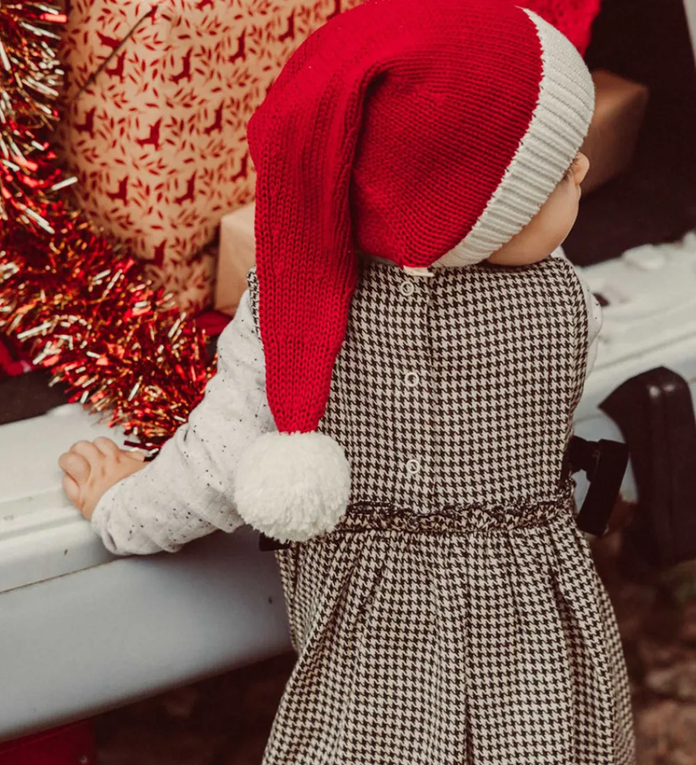 Elegant Thats Mine kjole med et klassisk hundetandsmønster i sort og hvid. Kjolen har brede stropper og er pyntet med sorte sløjfer i taljen. Skørtet har en let rynket effekt, som giver kjolen ekstra fylde. I ryggen åbnes kjolen med tre trykknapper, hvilket gør af- og påklædning lettere.