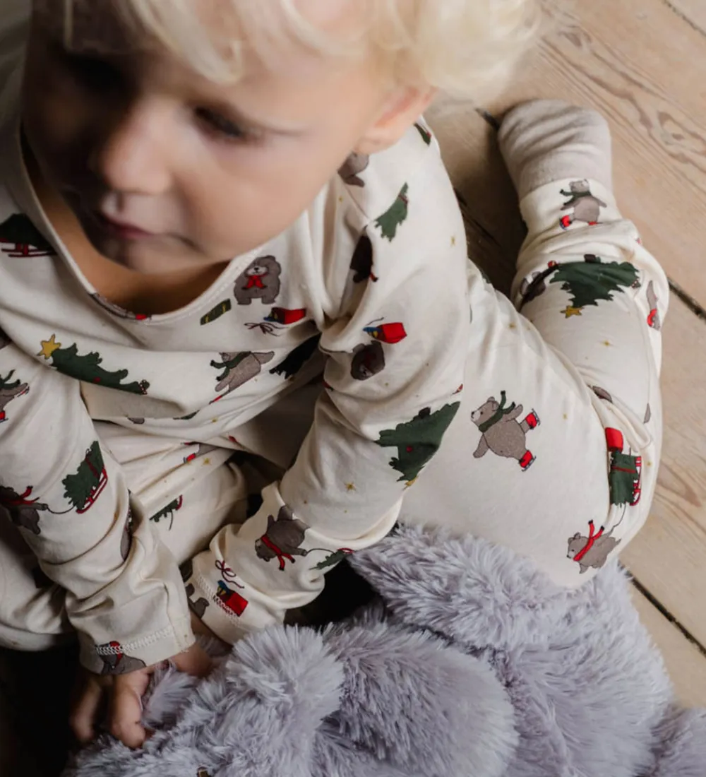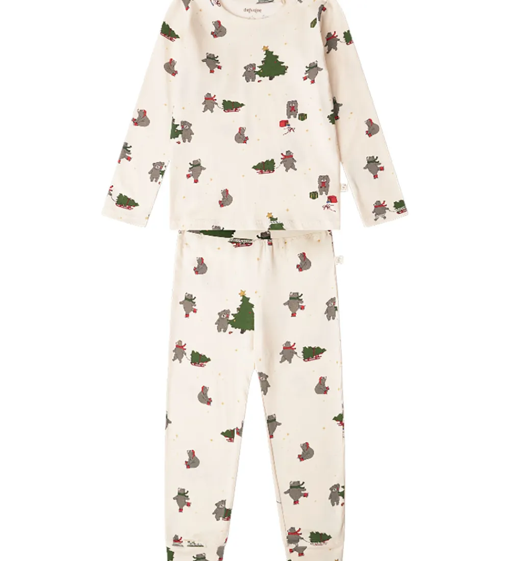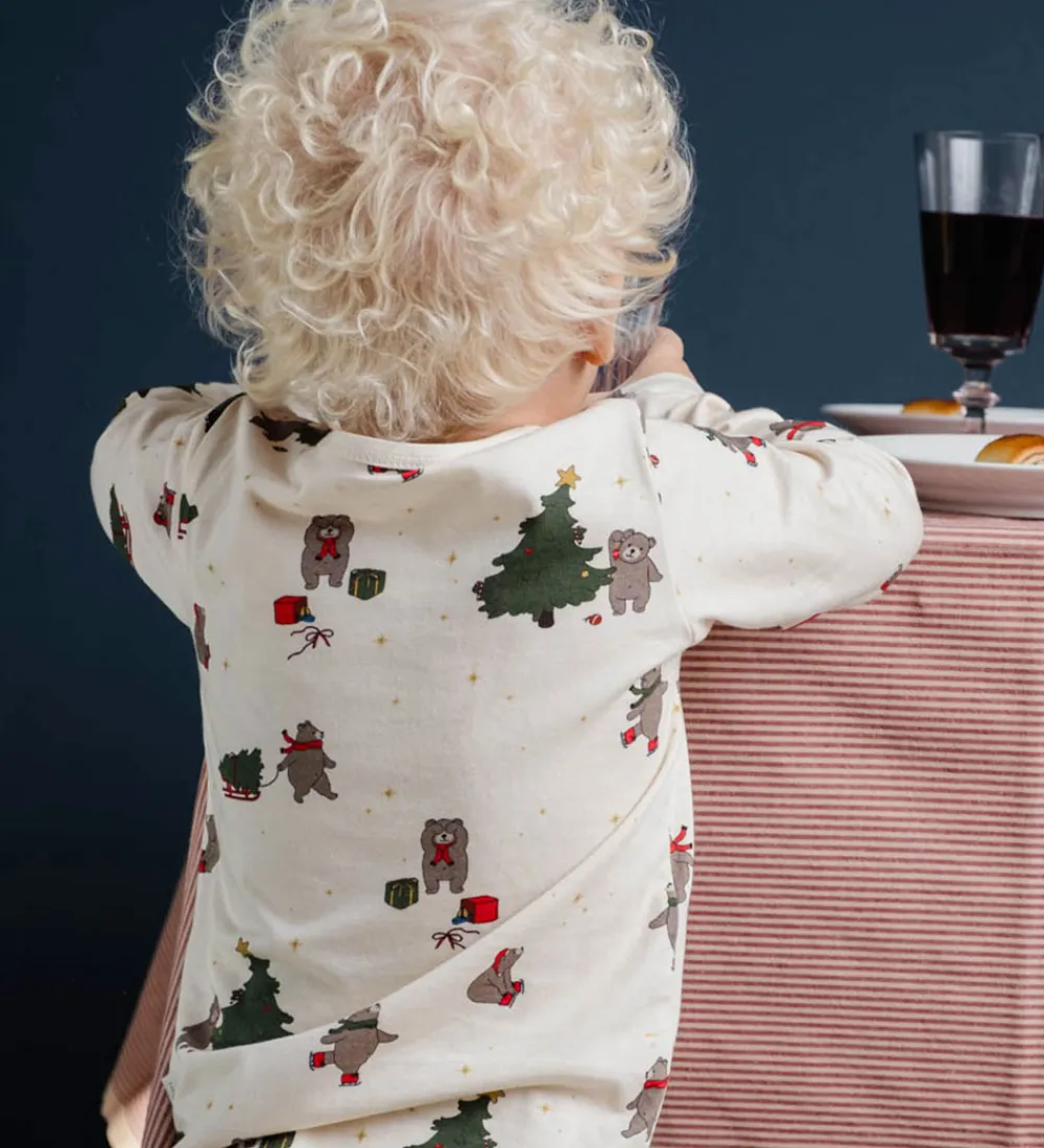 Charmerende Thats Mine nattøj med lange ærmer i en cremefarvet base, dekoreret med et farverigt print med juletema. Thats Mine nattøjet kombinerer komfort med et festligt design, der skaber glæde.