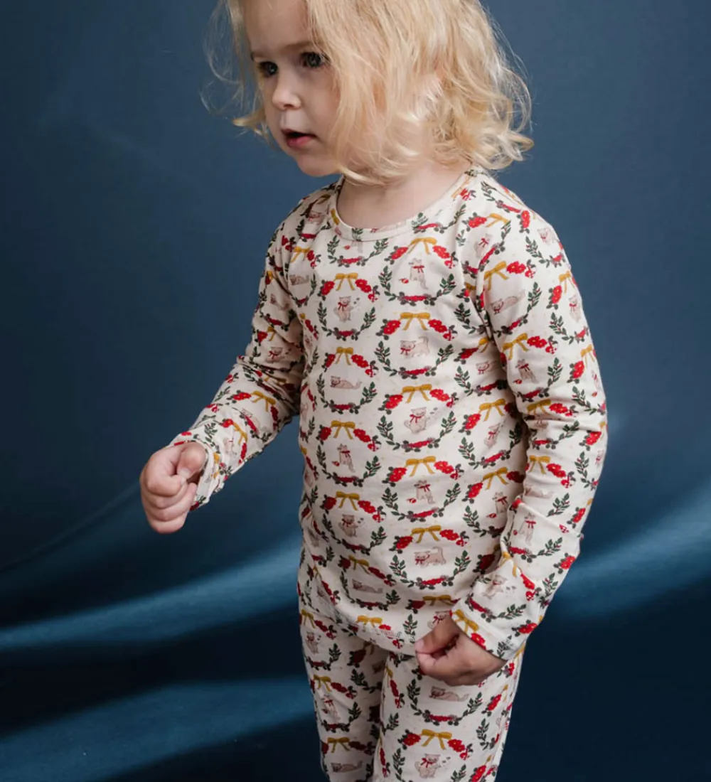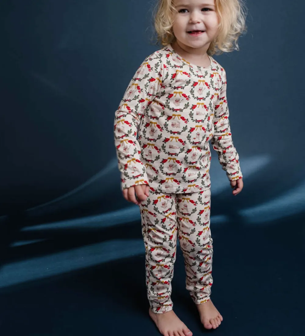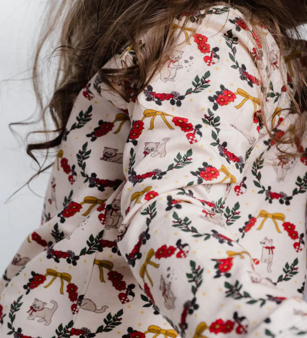 Charmerende Thats Mine nattøj med lange ærmer i en cremefarvet base, dekoreret med et farverigt print med juletema. Thats Mine nattøjet kombinerer komfort med et festligt design, der skaber glæde.