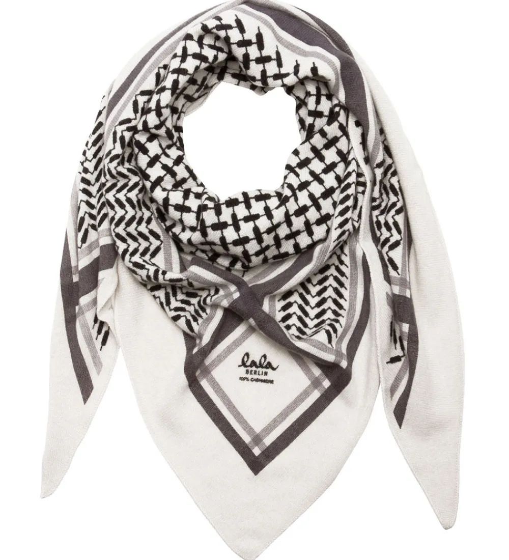 Fint Lala Berlin tørklæde i creme med det klassiske Kufiya mønster i sort og grå nuancer.