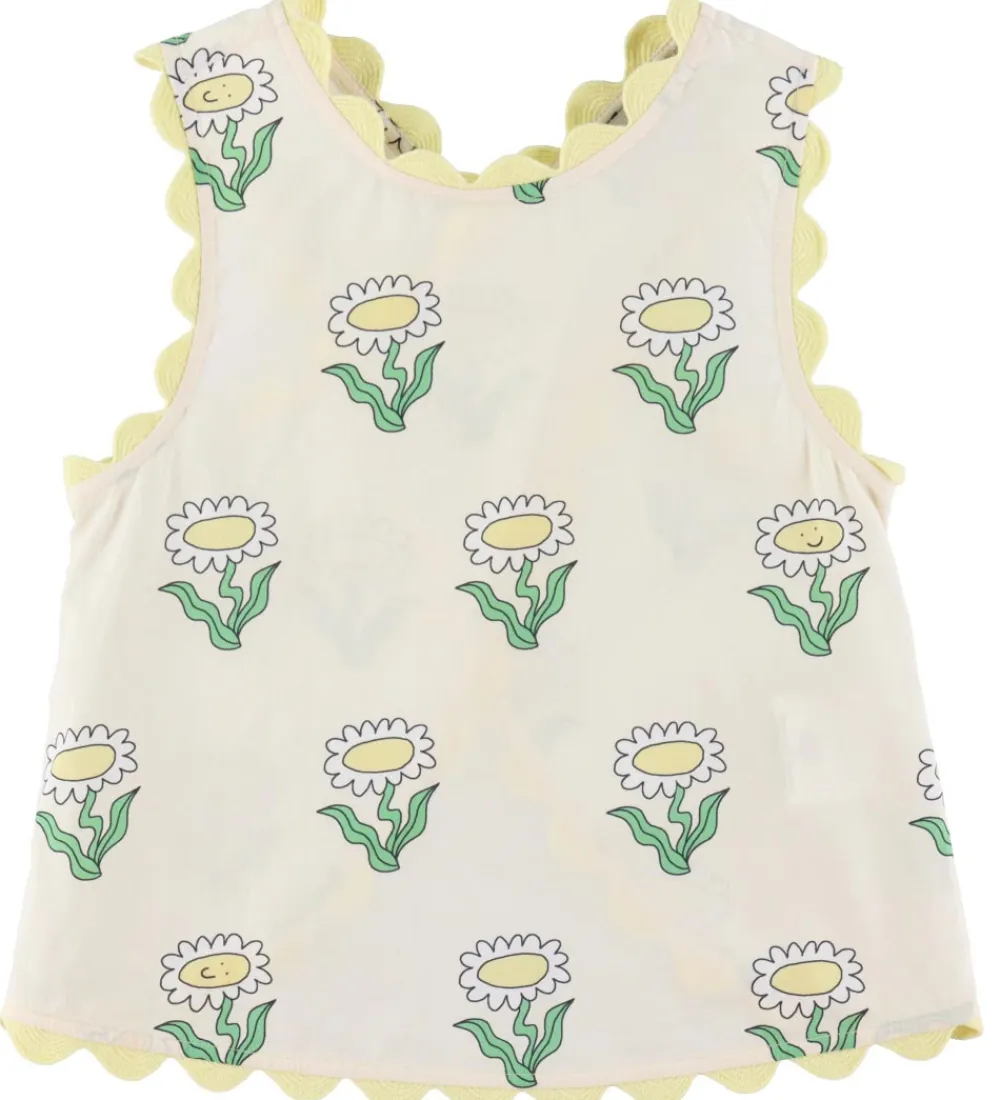 Stella McCartney Kids toppen er helt uden ærmer, og den har flotte, bølgende kanter i lysegul. Toppen er åben i ryggen, og den holdes sammen med to små knapper. Toppen er lavet i en let, fastvævet bomuldkvalitet.