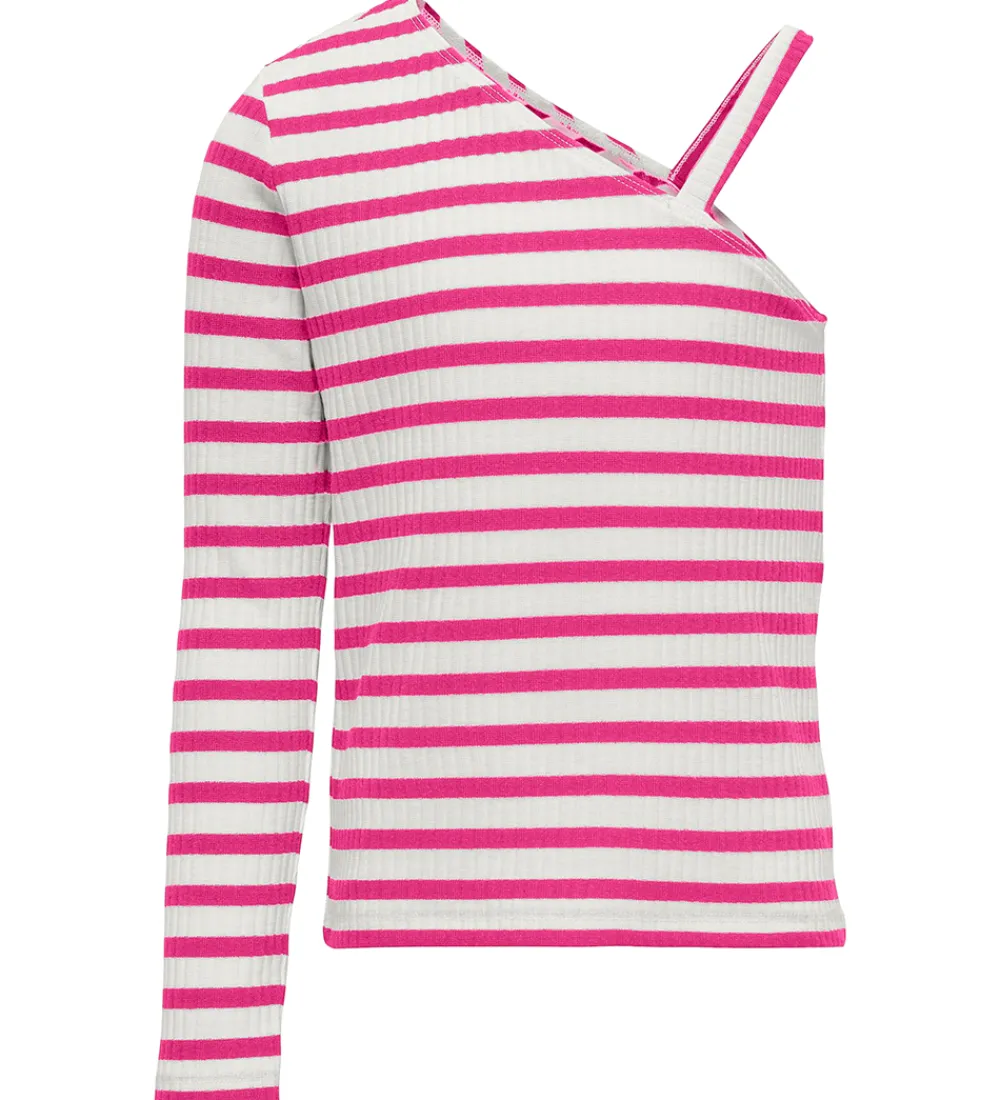 Model: KogNella L/S One Shoulder Top Jrs, Style: 15320234, Farve: Cloud Dancer/Raspberry Rose