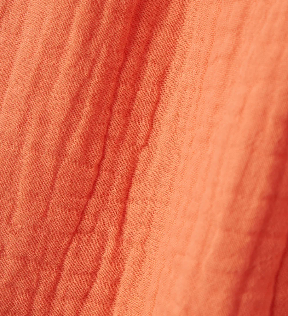Dejlig Name It top i en varm, orange farve med musselin struktur. Name It toppen har tynde stropper, der giver en let og luftig følelse, perfekt til varme dage.