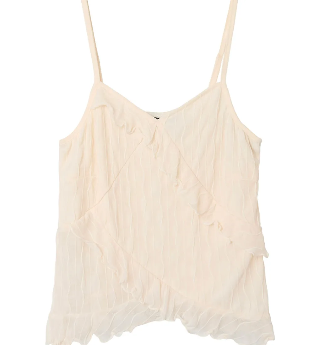 Elegant LMTD tanktop i en lys rosa nuance med et flot, bølget mønster. LMTD tanktoppen har smalle, justerbare stropper og fine flæsedetaljer, der giver et stilfuldt udtryk til ethvert outfit.
