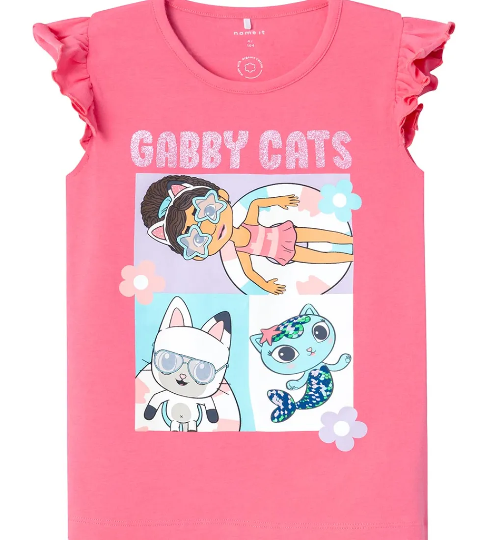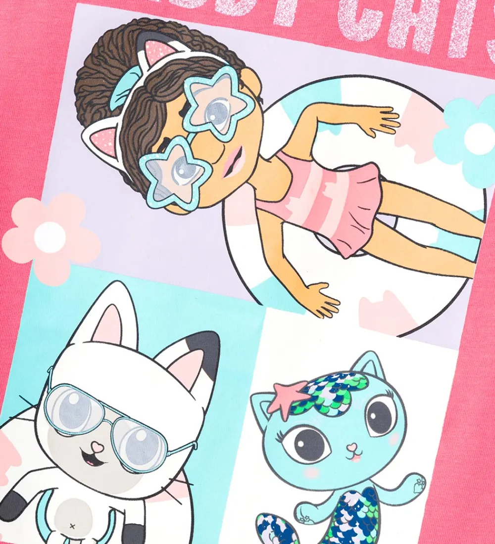 Skøn Name It top i rosa med et skønt og farverigt Gabby´s Dollhouse print på fronten, hvor dele af printet er med glitter.