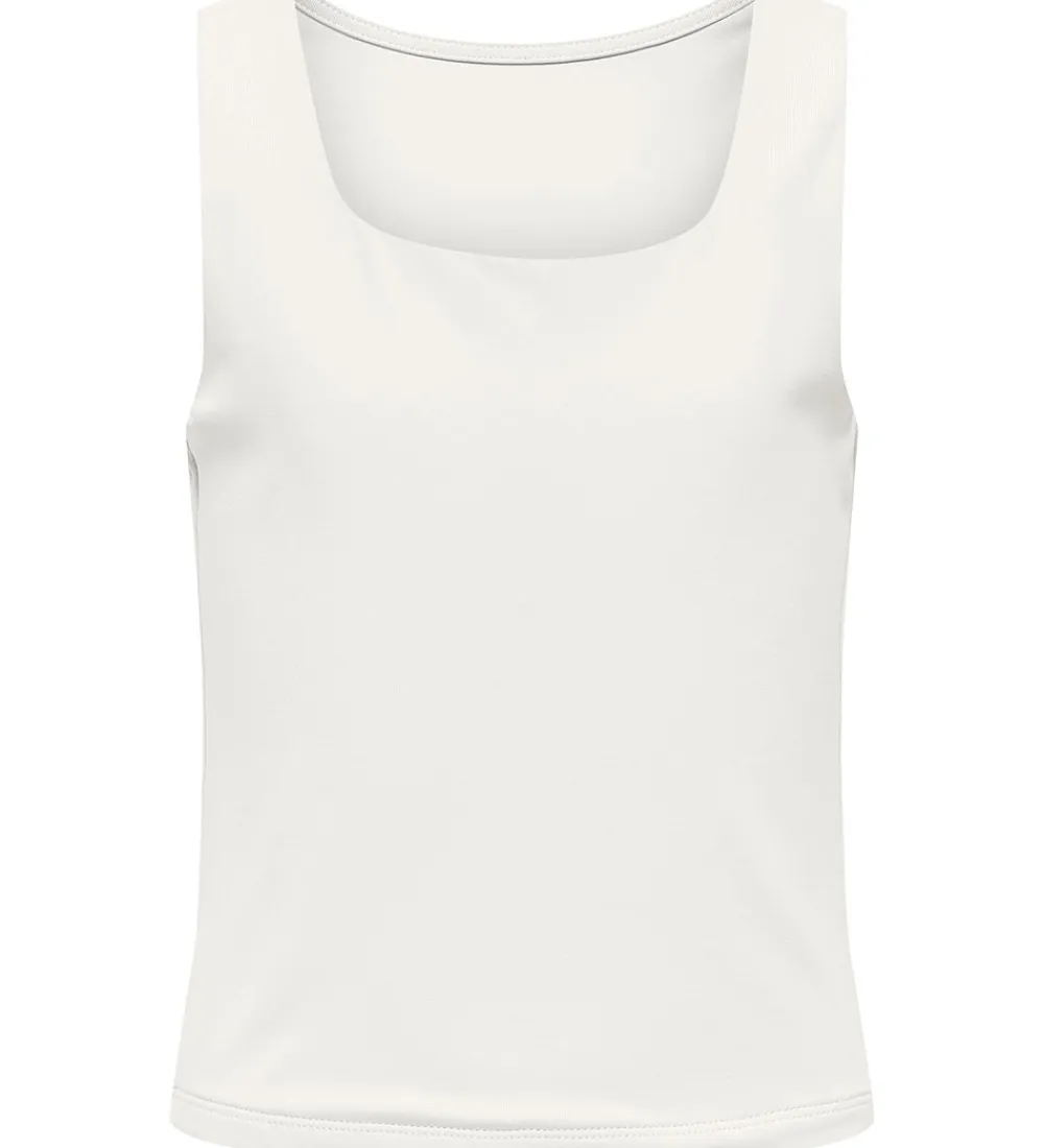 Kids Only toppen er helt uden ærmer og den har brede skulderstropper. På den ene side har den en dyb, kantet udskæring og på den anden side har den en høj udskæring. Toppen har et vendbart design, så man selv kan bestemme om den dybere udskæring skal være fronten eller ryggen.