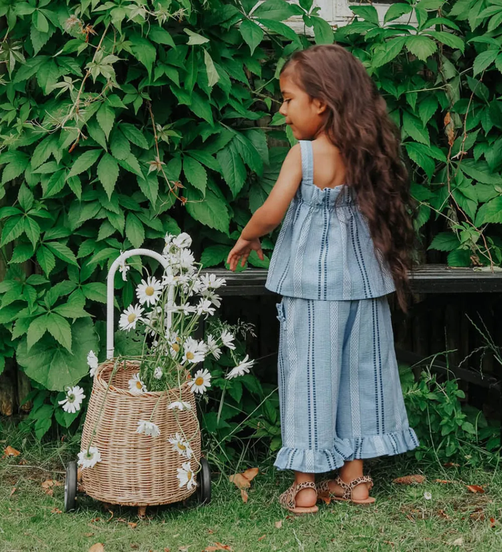 Charmerende Fliink top i en blå nuanceret farve med et flot stribet mønster. Toppen har elegante stropper og en behagelig elastisk kant ved brystet, der tilføjer en fin detalje.