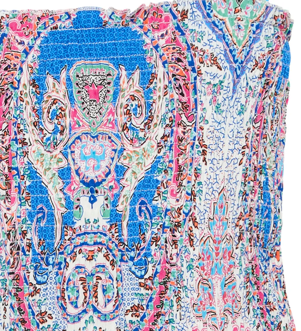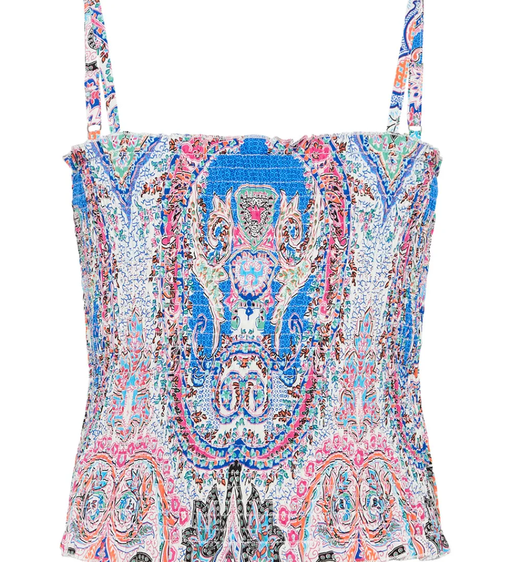 Farverig Grunt top med et allover print i forskellige blå, rosa, grønne og orange nuancer.