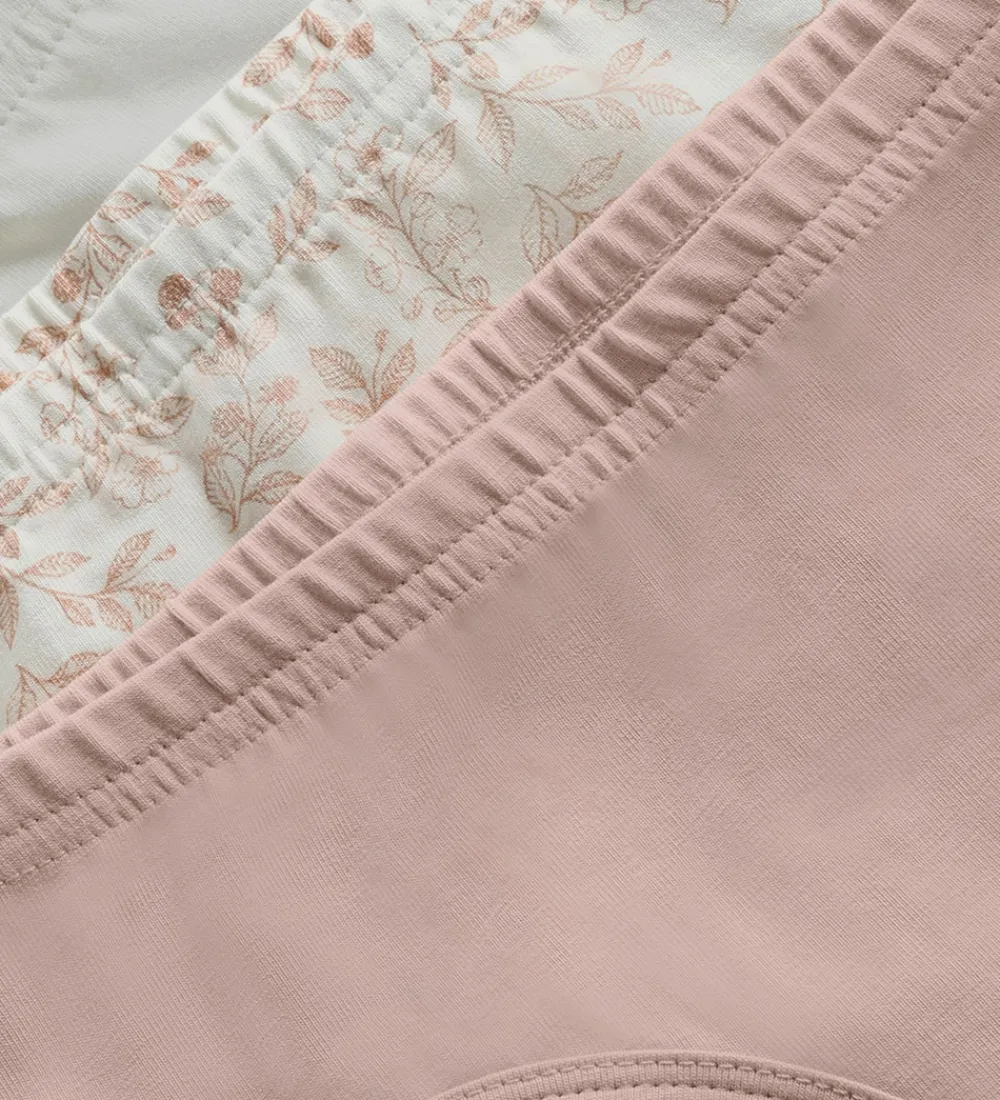 Flotte CeLaVi trusser solgt i en 3-pak. Trusserne er hhv. ensfarvet rosa, ensfarvet hvid og hvid med print af bær, blomster og blade i rosa. CeLaVi trusserne har en elastikkant i taljen, som sikrer en behagelig pasform.