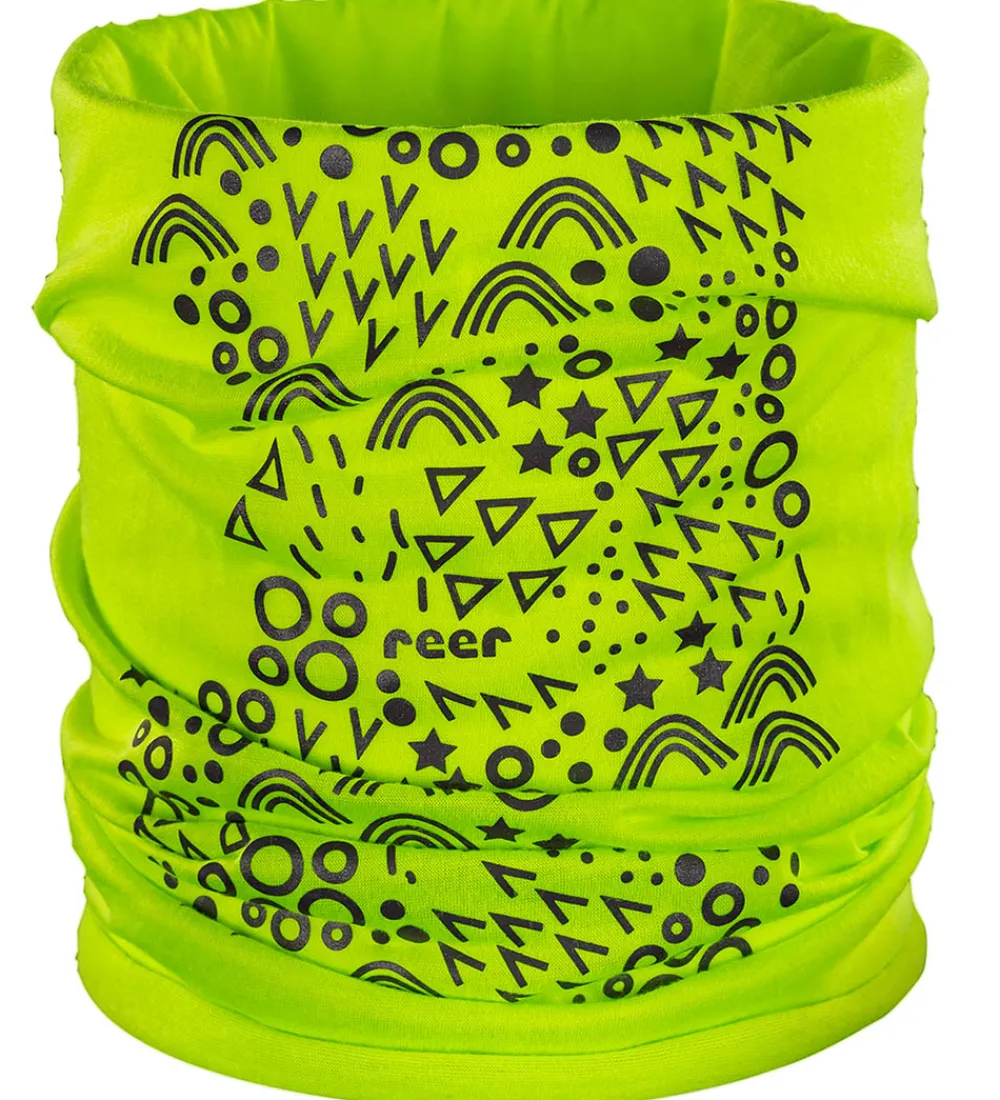 Reer tørklædet er formet som en tube, så den nemt kan placeres på barnet. Tørklædet er med smarte reflekser, så barnet nemt kan blive set i de mørke timer.