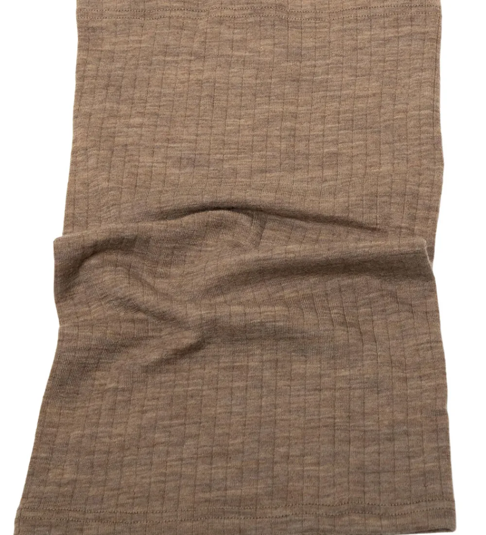 Dejligt Joha tubetørklæde i meleret, lysebrun uld med en flot ribstruktur.