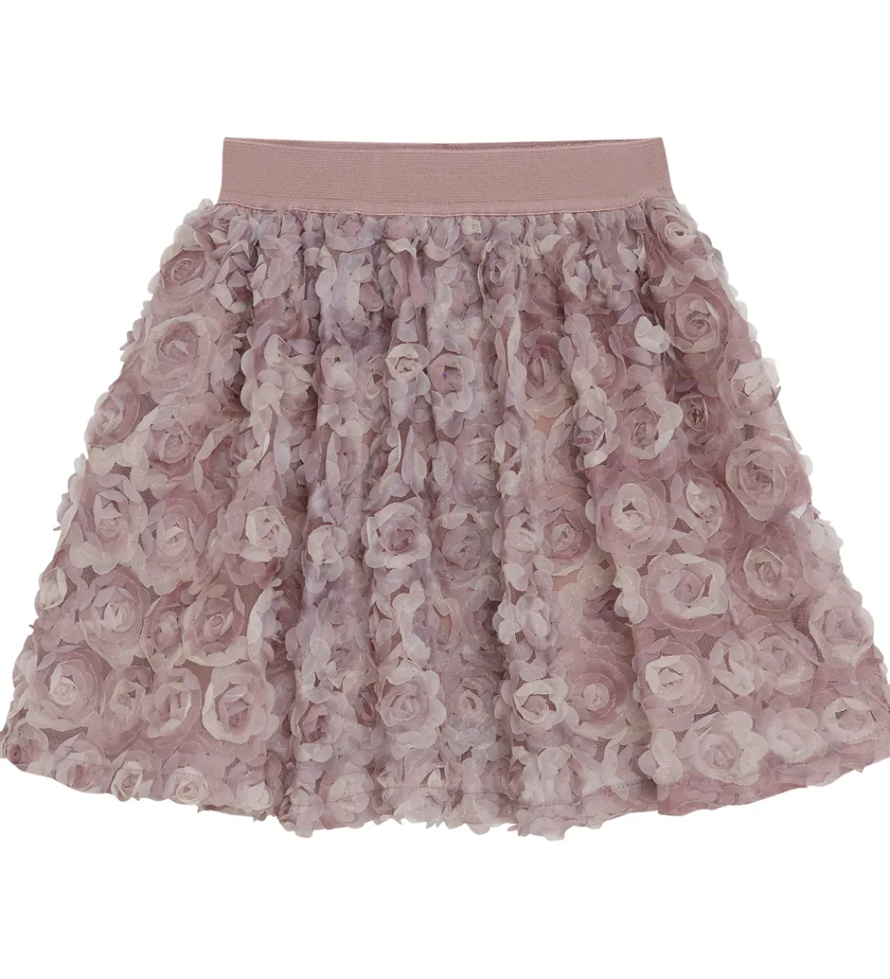 Flot tylnederdel fra Minymo i rosa og dekoreret med blomster lavet af tyl i rosa nuancer.