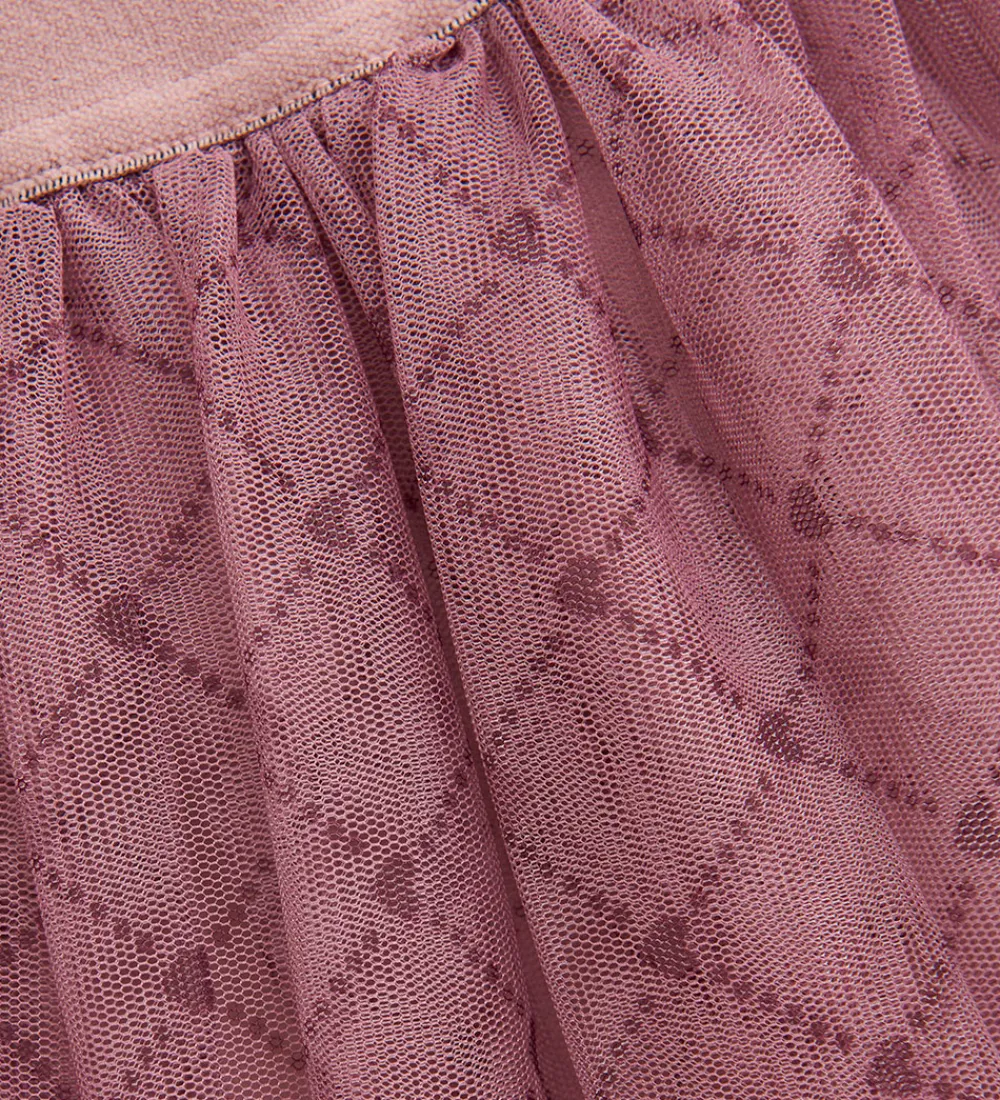 Creamie tylnederdelen har en bred elastikkant i livet, og nedenunder falder skørtet med maser af vidde. Skørtet består af to lag med fint tyl på ydersiden og blødt bomuldsjersey på indersiden.