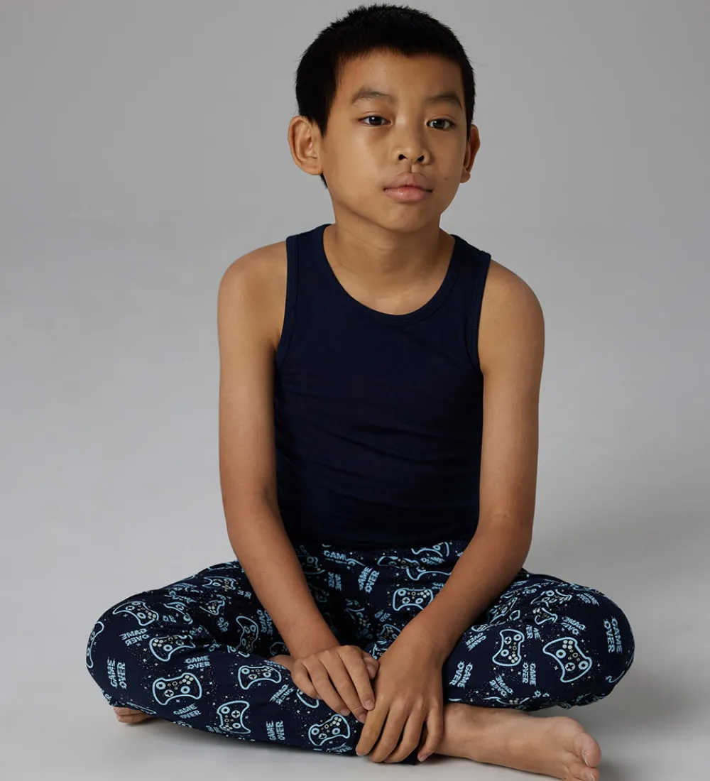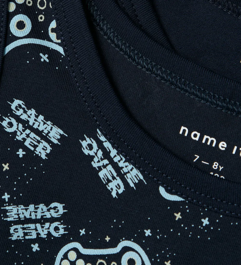 - Navyblå med lyseblåt allover-gamerprint