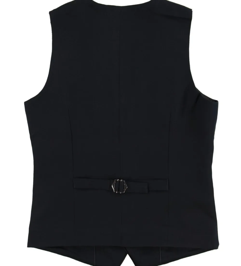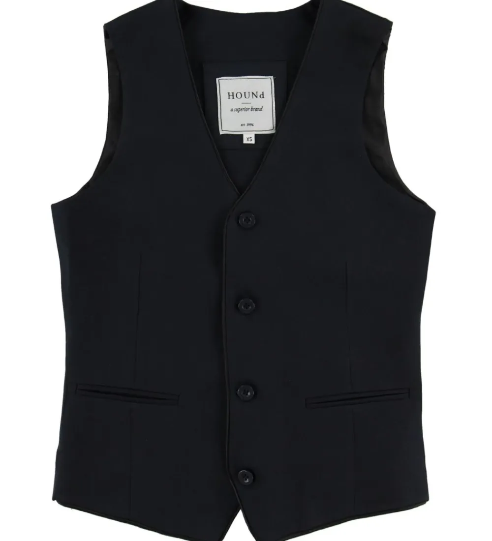 Hound vesten har brede skulderstropper og en klassisk V-krave. Vesten åbnes med navy knapper på fronten, hvor to praktiske lommer også findes på hver side af knapåbningen.