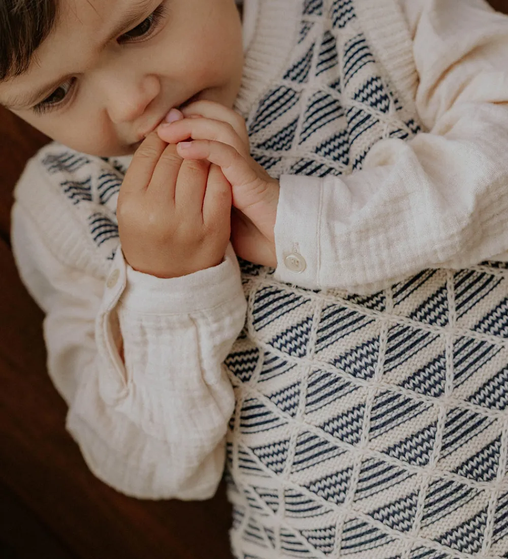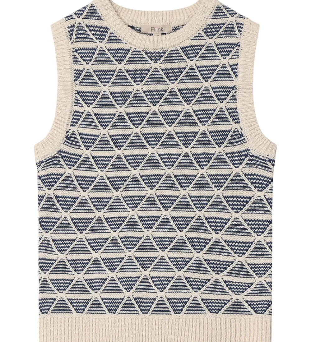 Stilfuld Fliink vest strikket i en lysebeige nuance med et unikt, geometrisk mønster. Fliink vesten har en behagelig pasform, der giver et moderne look. Perfekt til at tilføje et strejf af elegance.