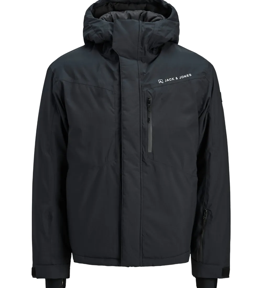 Moderne Jack & Jones vinterjakke i sort med et diskret logoprint på brystet.
