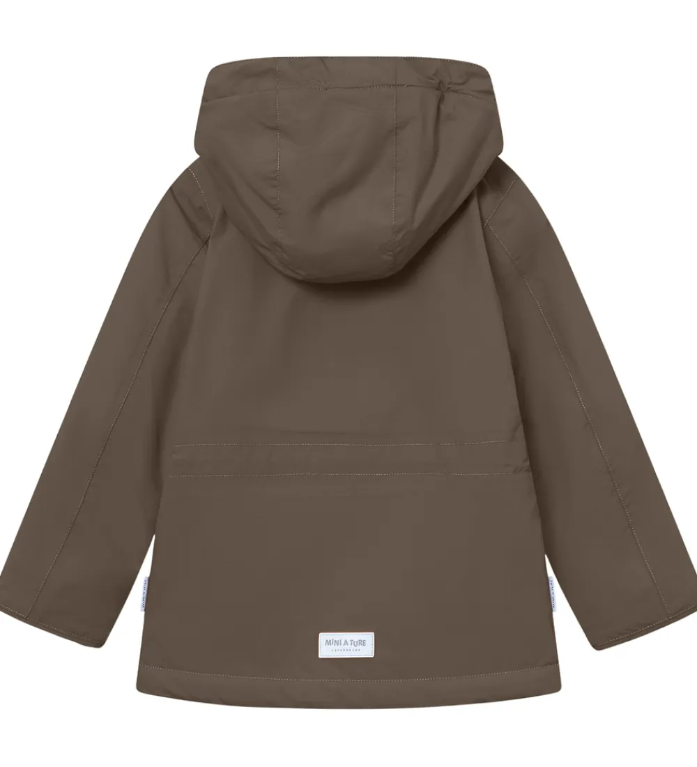 Mini A Ture vinterjakken har en aftagelig hætte, der fæstnes på ydersiden af kraven med trykknapper. Hætten har en hovedrund form, og på indersiden er der en elastikkant, så hætten sidder godt til ansigtet. Ved ærmerne er der praktiske snefang med brede, strækbare polyesterkanter med et hul til tommelfingeren. Bagtil i lænden er der en indvendigt justerbar elastikkant.