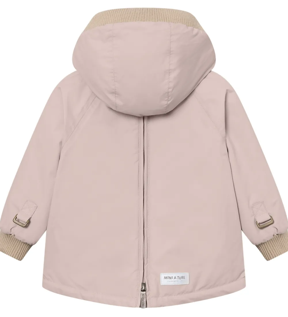 Sød Mini A Ture anorak i lys rosa. Vinterjakken er med beige for.