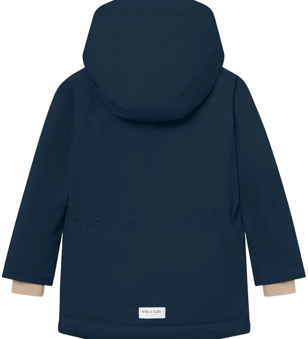 Sej Mini A Ture vinterjakke i navyblå. Vinterjakken er med beige for.