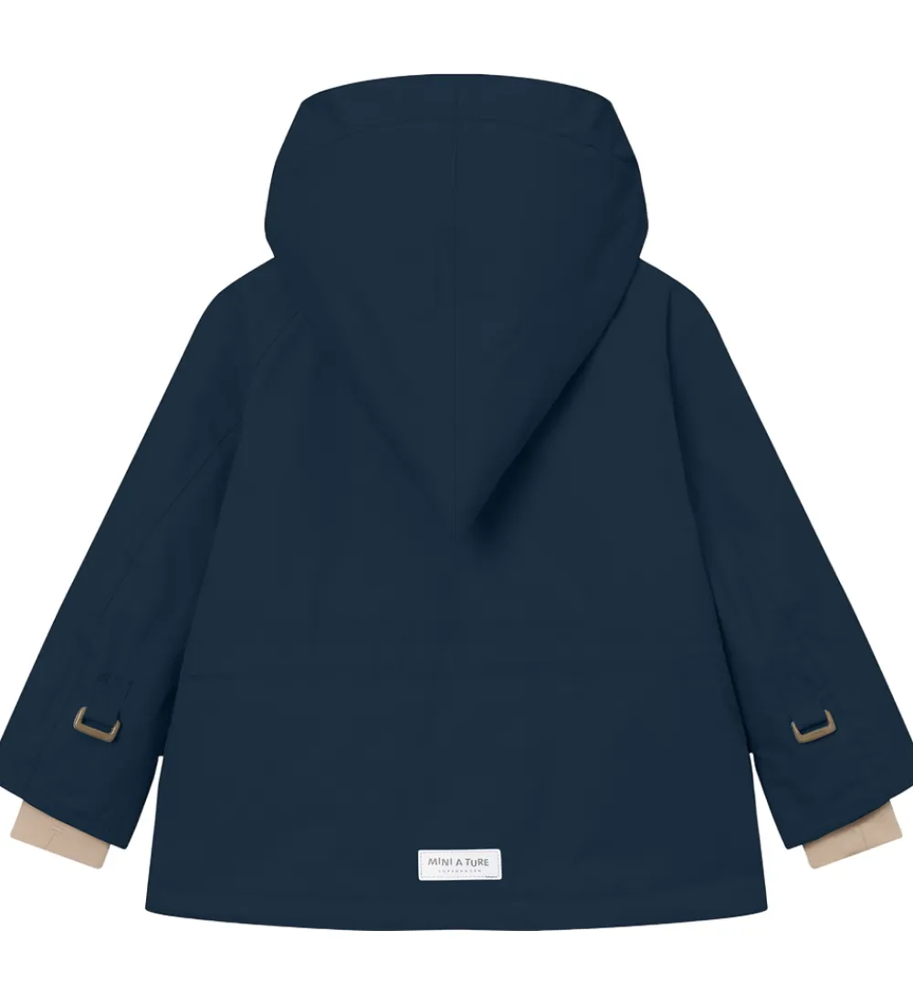 Dejlig Mini A Ture vinterjakke i navyblå. Vinterjakken er med beige for.