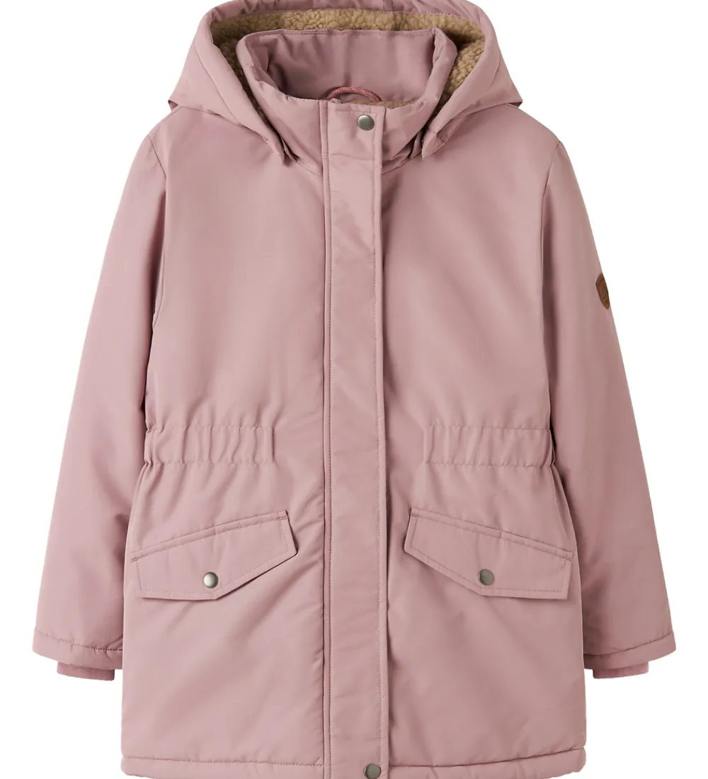 Vinterjakken har en elastik i taljen og både glatvævet for og for af teddyfleece. Vinterjakken har en god vattering.