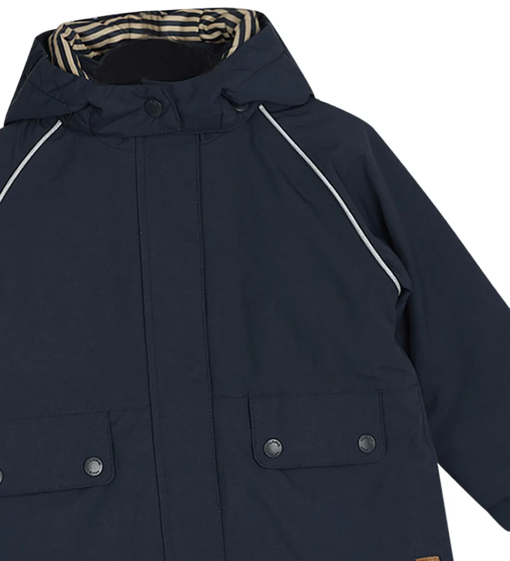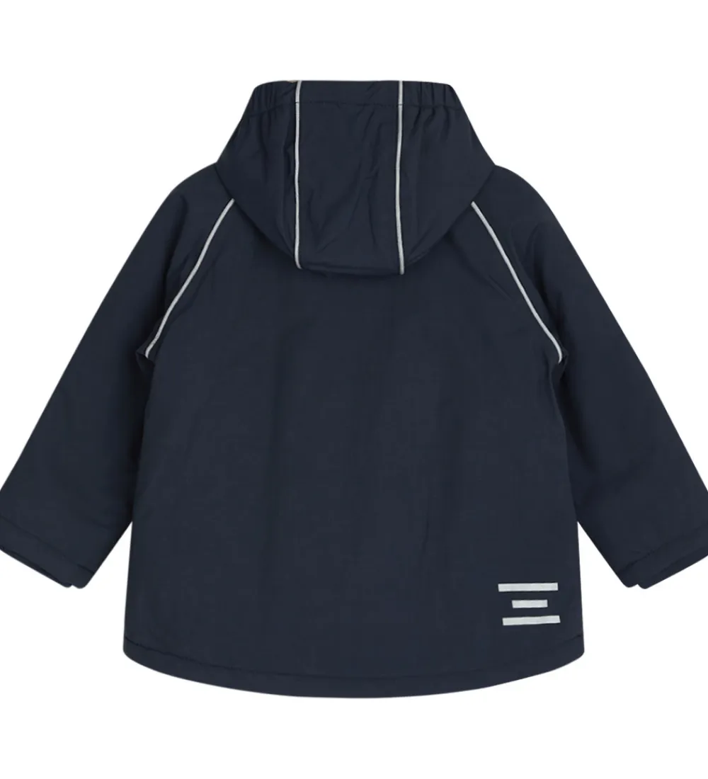 Flot Hust and Claire vinterjakke i navyblå med praktiske reflekspipings omkring skuldrene og på hætten.