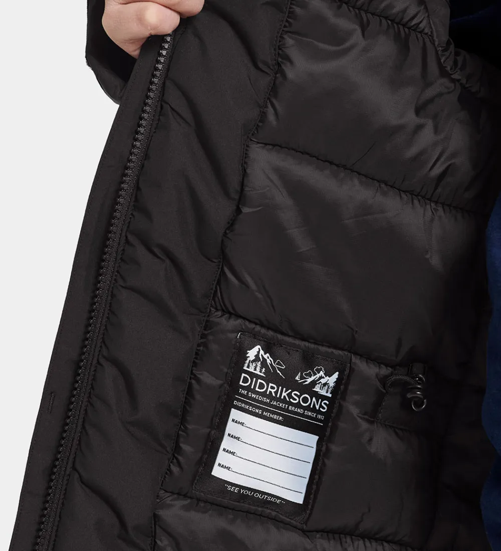 Didriksons vinterfrakken er godt vatteret, og indvendigt er der et glatvævet for.