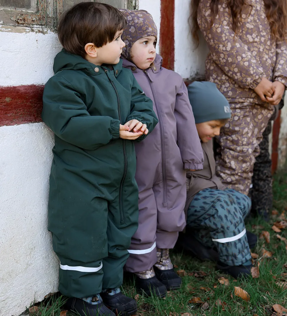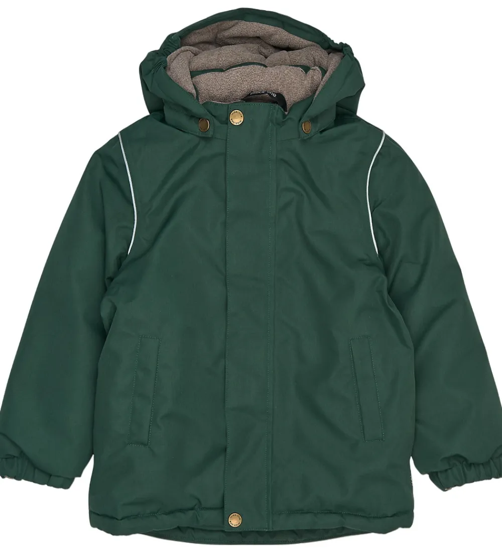 Pæn Mikk-Line vinterjakke i mørkegrøn. Vinterjakken har refleksdetaljer på hætten, nederst på ryggen og omkring skuldrene.